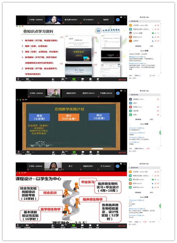 各学院(部、中心)也积极行动起来,纷纷成立学院疫情防控教学工作保障小组,通过召开党政联席会视频会、教学工作专题视频会的方式研究部署积极应对措施。其中,临床医学院按照早安排、早部署、早行动,早落实的工作方针,与各附属医院细致深入研究教学实施方案,制定了《临床医学院关于疫情防控期间临床教学工作安排的通告》,并完成教学测试等。医疗器械学院将疫情防控过程与专业课教学有机融合,充分发挥课程思政效能,充分激发学生的家国情怀和抗疫信心。医学影像学院第一时间要求老师做好线上教学思想准备。老师们及时行动起来,抓紧备课建课,确保在试运行前上线。学院及时收集和掌握课程每天的运行情况和学生的网上出勤情况,网络堵塞时候及时微信保持联系,为正式开学做好准备。药学院的教师在教学能力的提升上,发挥“传帮带”的作用,年轻的教师主动帮助经验相对欠缺的教师进行在线备课教学。外语教学部针对课程量大面广的现实情况,采用优质教学资源和教师在线指导结合的方式,进行特殊时期的教学安排。护理与健康管理学院面临着学生多,层次多,老师多,课程多以及中美班合作教学等工作在线开展的挑战,按照学校要求稳定教学秩序,既充分发挥主观能动性,又充分利用学校提供的资源保障,组织号召学生,充分利用暂停实习的时间和在线学习资源,为5月份参加护士执业资格考试做好复习工作,积极开展在线教学准备工作,保质保量地完成教学任务。(教务处)