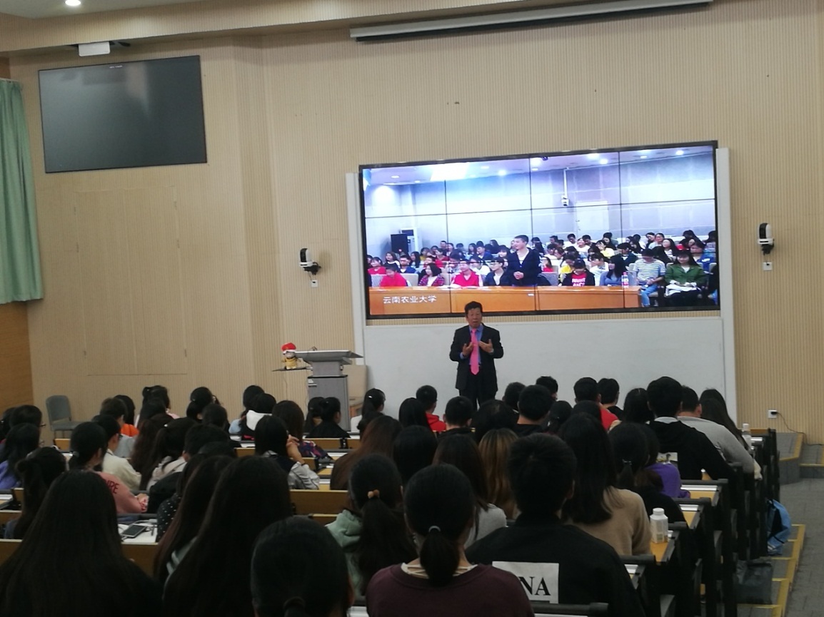 此次见面课的主题为 “如何更好地进行传播与沟通”,李占才教授首先围绕“怎样才能更好地沟通”这一问题展开,通过幽默诙谐的语言表达,引经据典,与时俱进,结合大学生活中的实际案例,将信息沟通的重要性、信息沟通的原则及信息传递的要素等知识与同学们进行了详细生动地讲解。在名师与我校学生现场互动的同时,本次课程利用沉浸式互动教室的远程功能,与云南农业大学、陕西师范大学的同学们进行了课程的实时直播、远程互动和同步录制,实现了不同校区、不同学校之间的课程共享,让非主场学校的学生能身临其境地参与到课堂中来。在课程最后的互动环节,来自三所学校的学生踊跃提问,将课程气氛点燃至高潮。跨校互动式的见面课令课堂变的无限大,跨越课堂的围墙,共享名师、共享课堂、共同交流、共同成长。