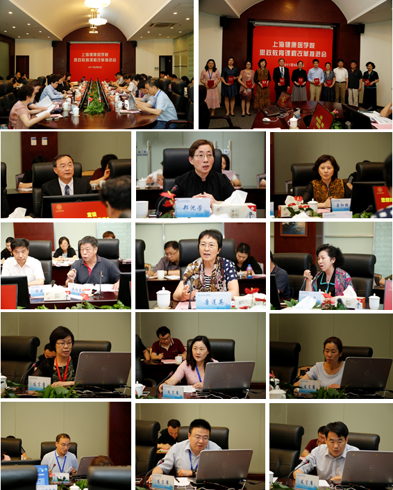 6月2日下午,上海健康医学院思政教育课程改革推进会在1号楼108会议室召开。校党委书记郑沈芳、校长黄钢、校党委副书记李明磊、副校长于莹出席会议,副校长唐红梅主持会议。陈建新、唐莲英、吴仁友、叶文琴四位来自高校及行业的专家作为我校课程思政指导委员会委员受邀出席会议,各二级学院院长、党总支书记以及相关部门负责人出席会议。