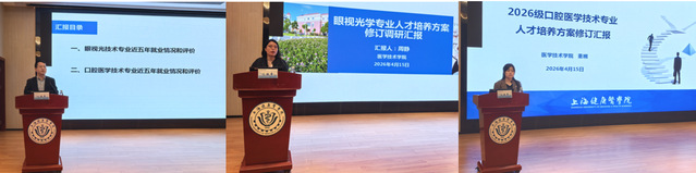 为深化教育综合改革,提升人才培养的精准供给能力,4月15日,我校组织召开2026本科人才培养方案修订汇报暨专家论证指导会。校党委副书记、副校长王庆华,副校长汤磊出席会议。会议邀请了上海市眼病防治中心,上海市第一人民医院,上海三联(集团)有限公司,上海市徐汇区口腔医院,维创数齿(上海)医疗技术有限公司,上海沪亮生物医药科技有限公司等单位的行企专家参会指导。学校相关职能部门负责人、各二级学院党总支书记、教学负责人、学工负责人及专业教师参会,会议由汤磊主持。